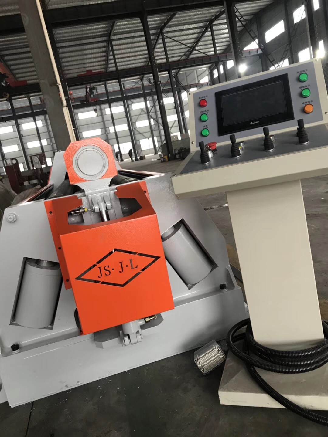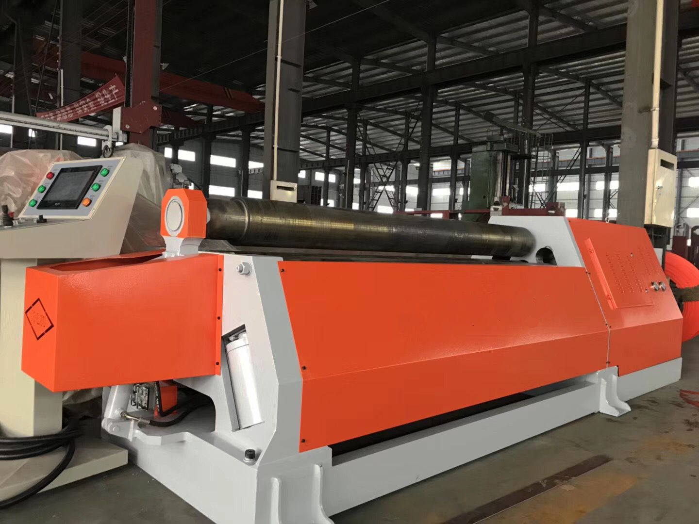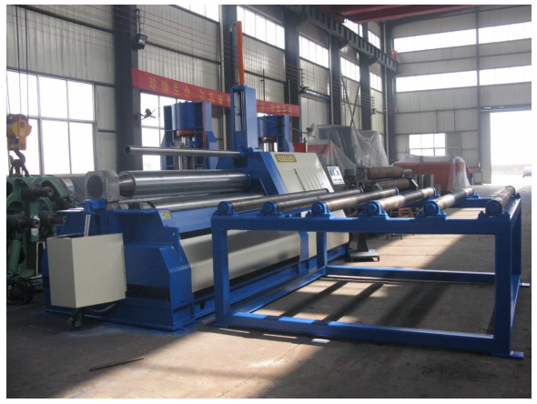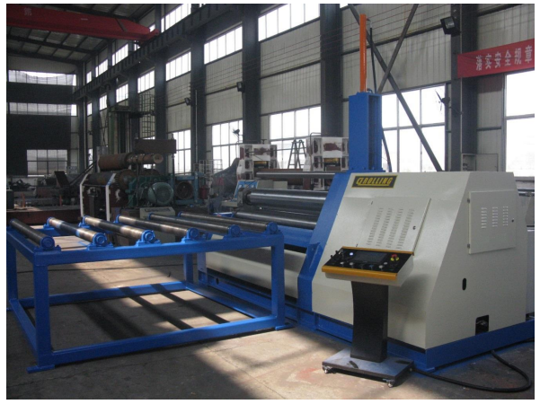 產(chǎn)品簡介:四輥卷板機(jī)用于制造壓力容器、機(jī)械、水電、建筑等行業(yè)的筒體的預(yù)彎、卷圓,同時(shí)具有校圓、校平功能。上輥液壓馬達(dá)方式主傳動,通過鋼板與輥?zhàn)又g的磨擦力帶動下輥、側(cè)輥轉(zhuǎn)動,為卷圓提供扭矩。下輥、側(cè)輥、翻倒架液壓驅(qū)動。下輥垂直升降、側(cè)輥傾斜弧線升降。預(yù)彎通過下輥上升夾住鋼板,側(cè)輥傾斜上升實(shí)現(xiàn)板材端部預(yù)彎。
